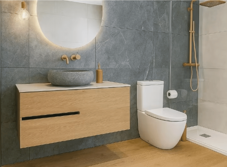 Baño completo con materiales premium.