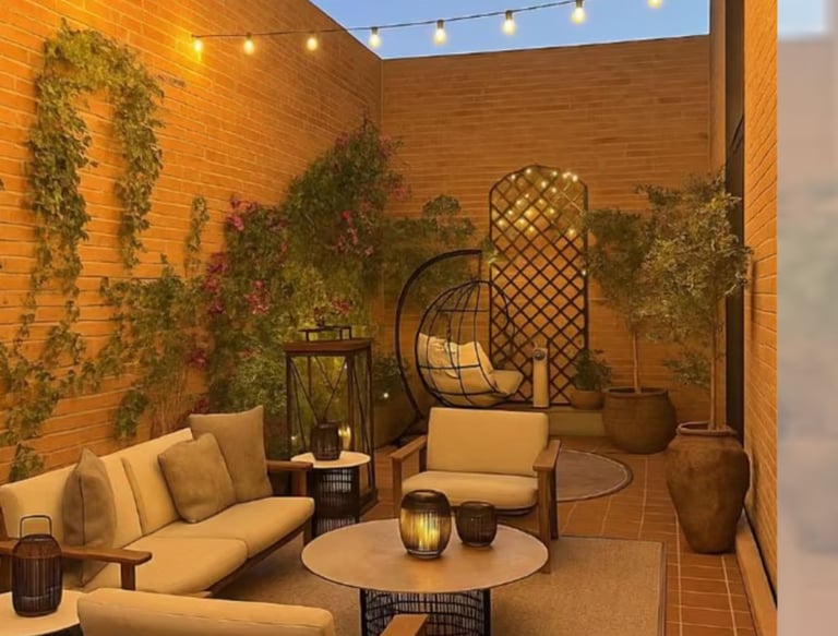 Terraza privada tipo patio, ideal para reuniones, relax o zona chill-out.
