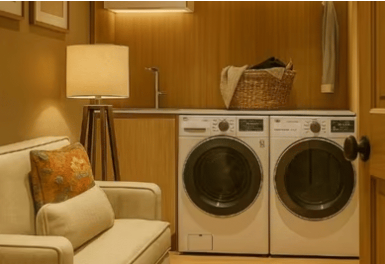 Cocina abierta con zona de lavandería