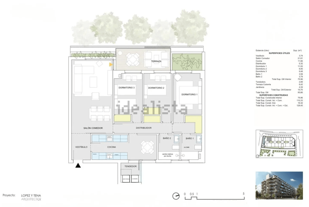 Con una superficie construida de 128 m², esta vivienda destaca por su diseño contemporáneo, sus altas calidades y una distribución funcional que aprovecha al máximo la luz natural gracias a su orientación este-oeste.