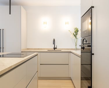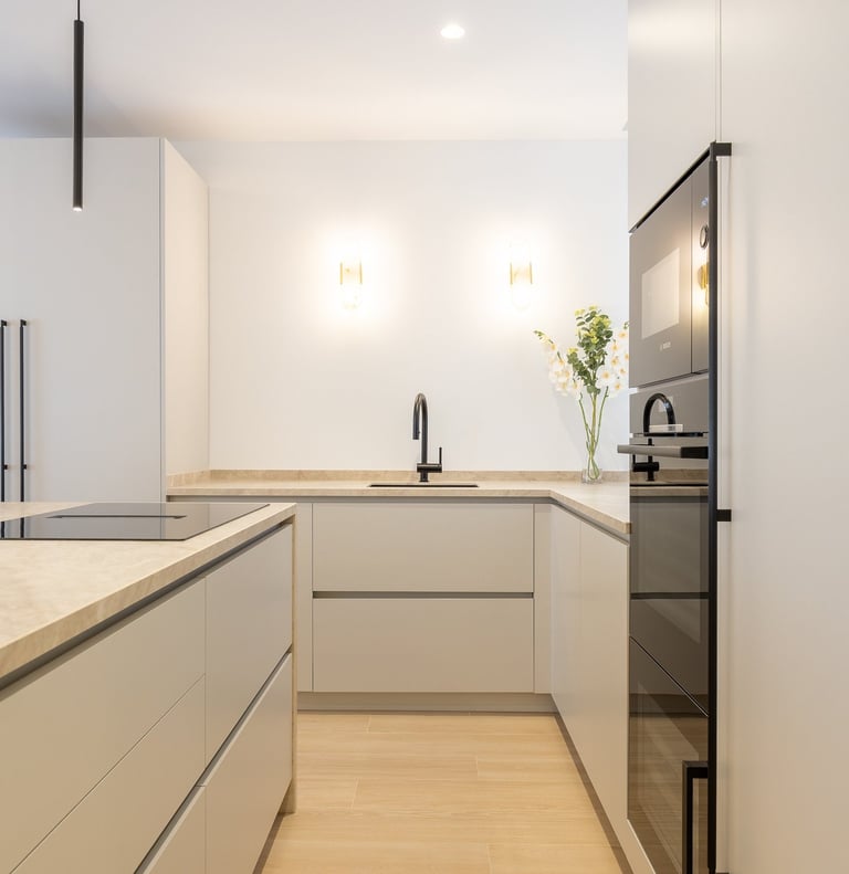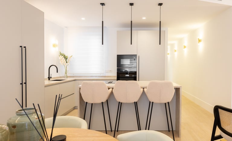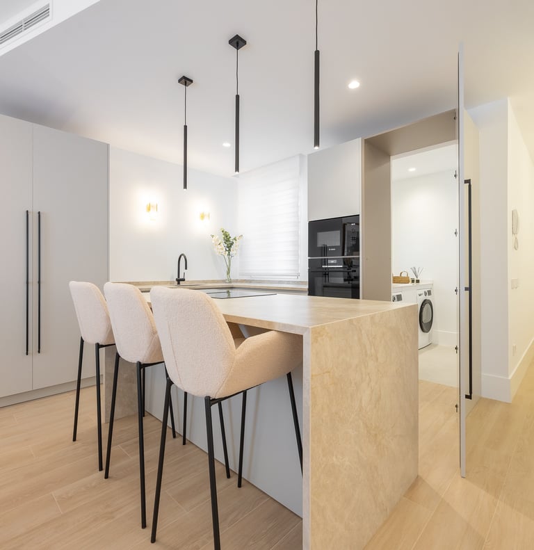 La distribución es amplia y funcional, destacando un luminoso salón-comedor con espacio para crear distintas zonas de estar y ocio. La cocina, de diseño moderno y equipada con mobiliario y electrodomésticos de primera calidad, incluye un cuarto de lavandería independiente que aporta comodidad al día a día.