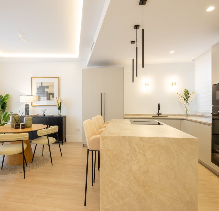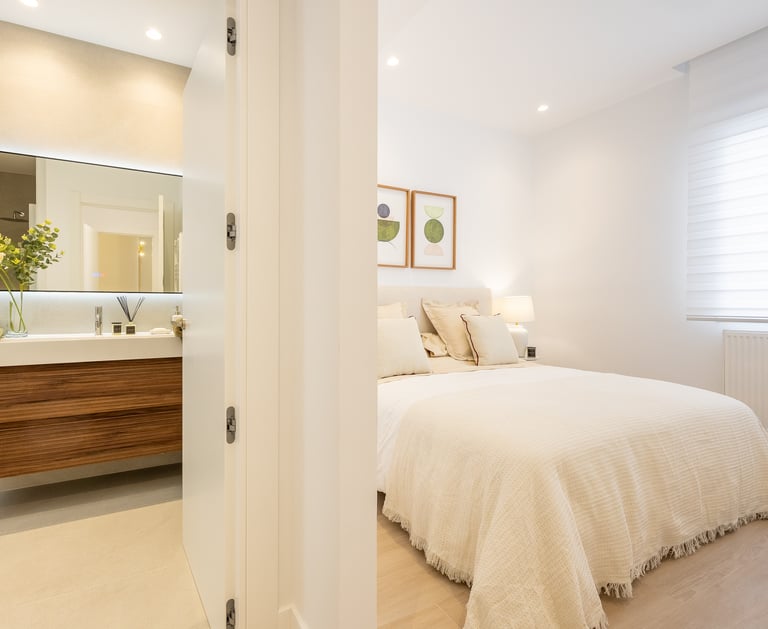 La zona de noche cuenta con dos dormitorios, ambos de generosas dimensiones, y dos baños completos, uno de ellos en suite. La reforma ha cuidado cada detalle, incorporando materiales de primera categoría, acabados elegantes y soluciones que maximizan el confort y la eficiencia energética.